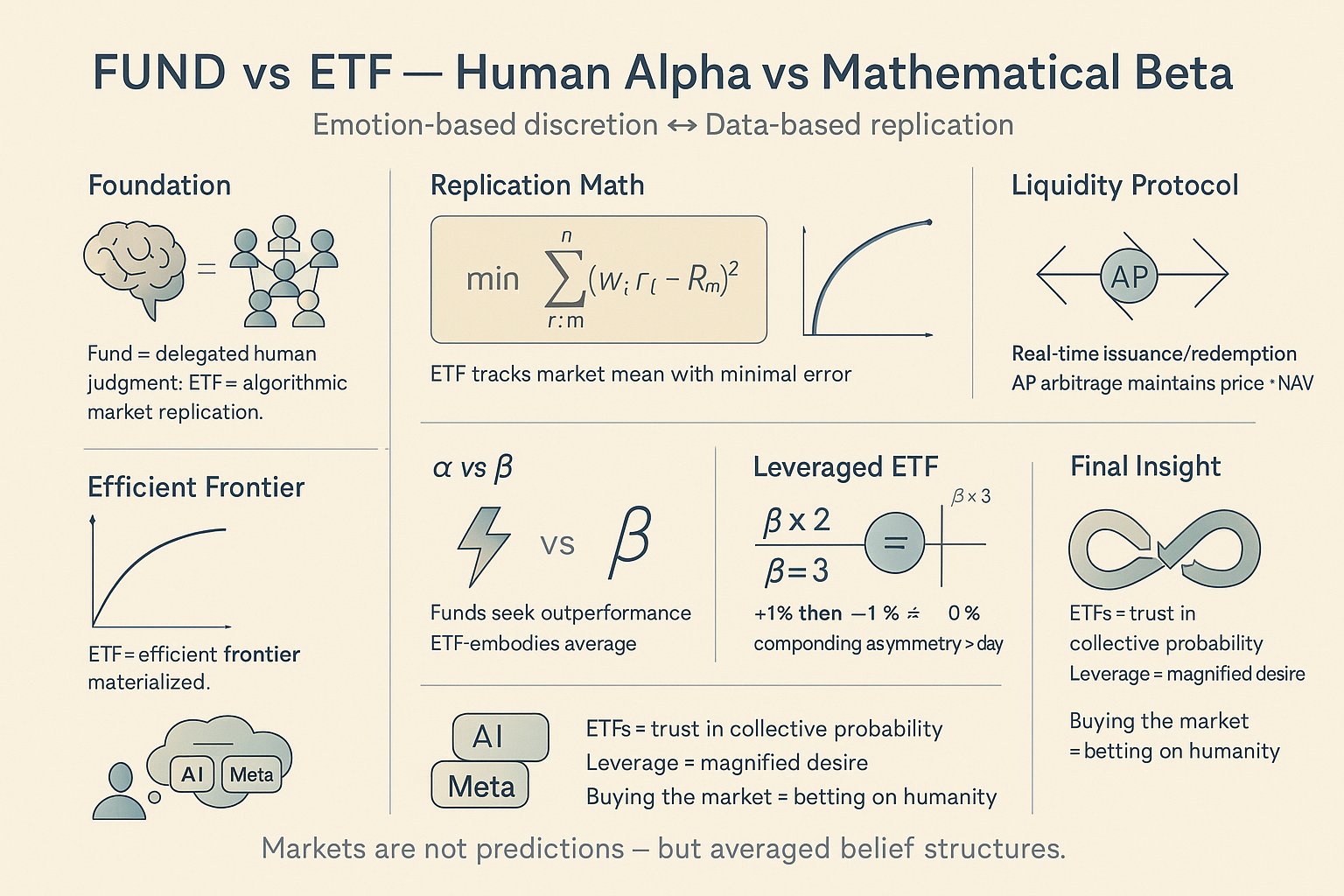 ETF는 단순히 ‘투자 도구’가 아니라 인간과 확률, 기술과 신념이 교차하는 철학적 장치다.
